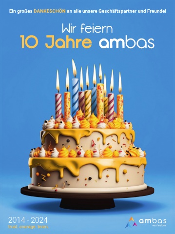 Ein großes DANKESCHÖN an alle unsere Geschäftspartner und Freunde! Wir feiern 10 Jahre ambas 2014 - 2024 trust. courage. team. SHOPPING PLACES* MAGAZINE 1 / 2024 7